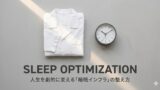 - 睡眠: 筋肉と脳の修復は寝ている間にしか行われません。こだわりの寝具で質の高い休息を。